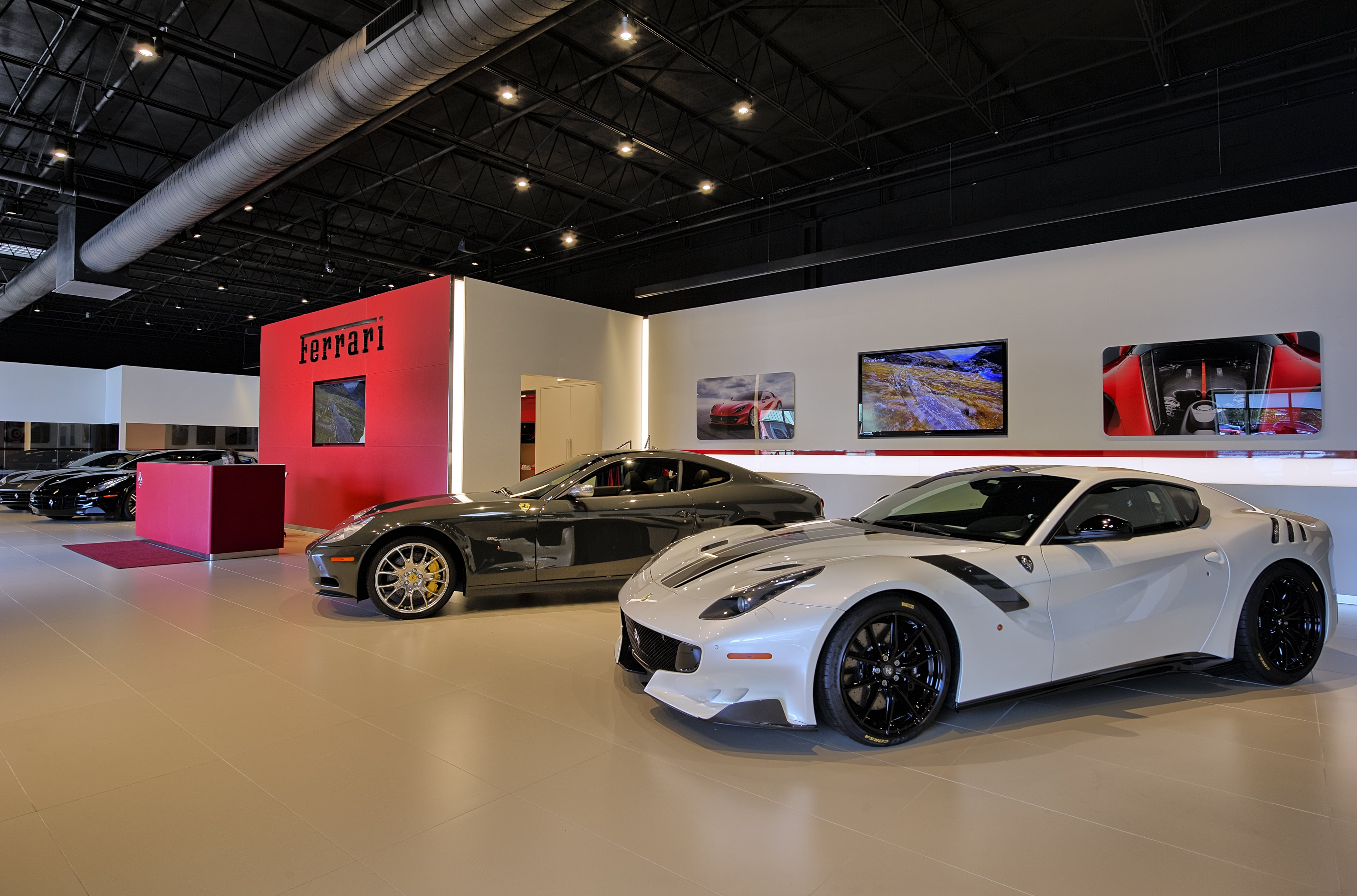 We helped Ferrari Lake Forest to clearly and creatively define their scope of work for cost control, while giving them a beautiful design. Our work included exterior improvements for a new image and better street appeal, as well as sleek showroom interiors and furnishings, in coordination with Ferrari in Italy.