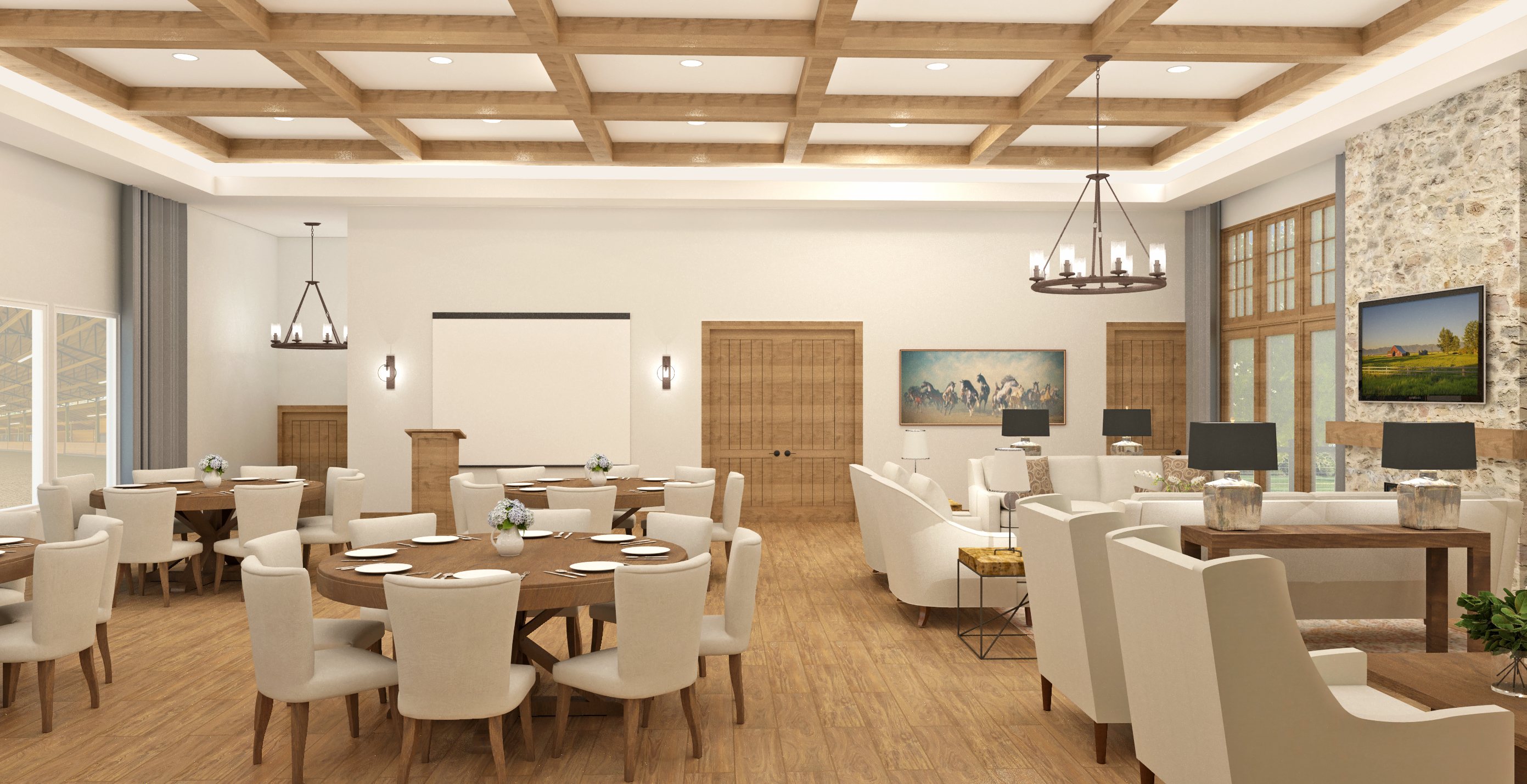 Coming Soon! This multi-purpose equine center is a mix of rustic charm and elegance. The 32,000 square foot facility includes a fully equipped horse barn, indoor riding arena, run-in shed, trailer storage and lounge space for catered events and conferences. Our clients came to us with plans provided by Wick Buildings with the intention to elevate the design, as well as create construction drawings, assist with interior selections and provide 3D renderings to help visualize interior and exterior spaces.