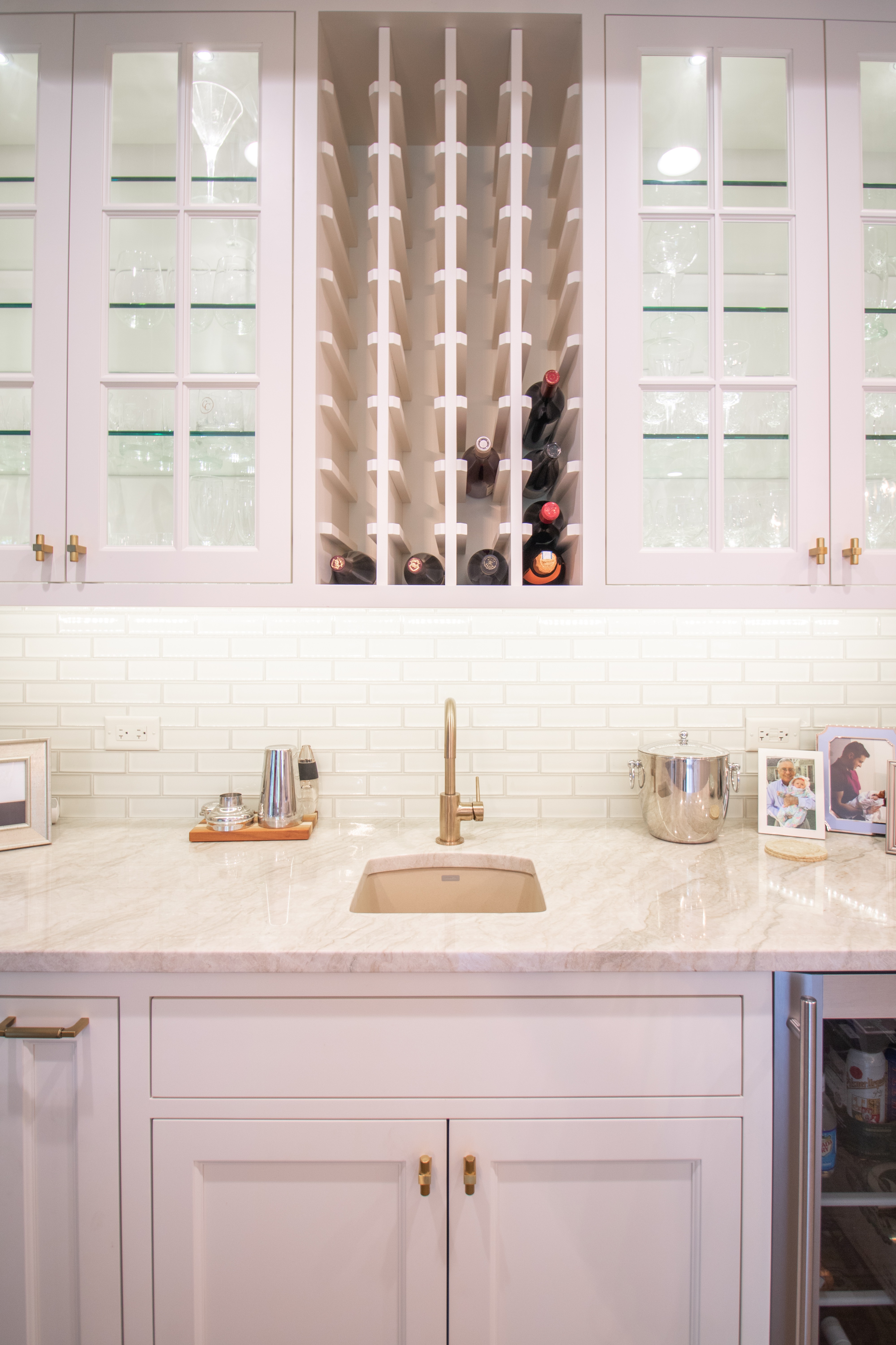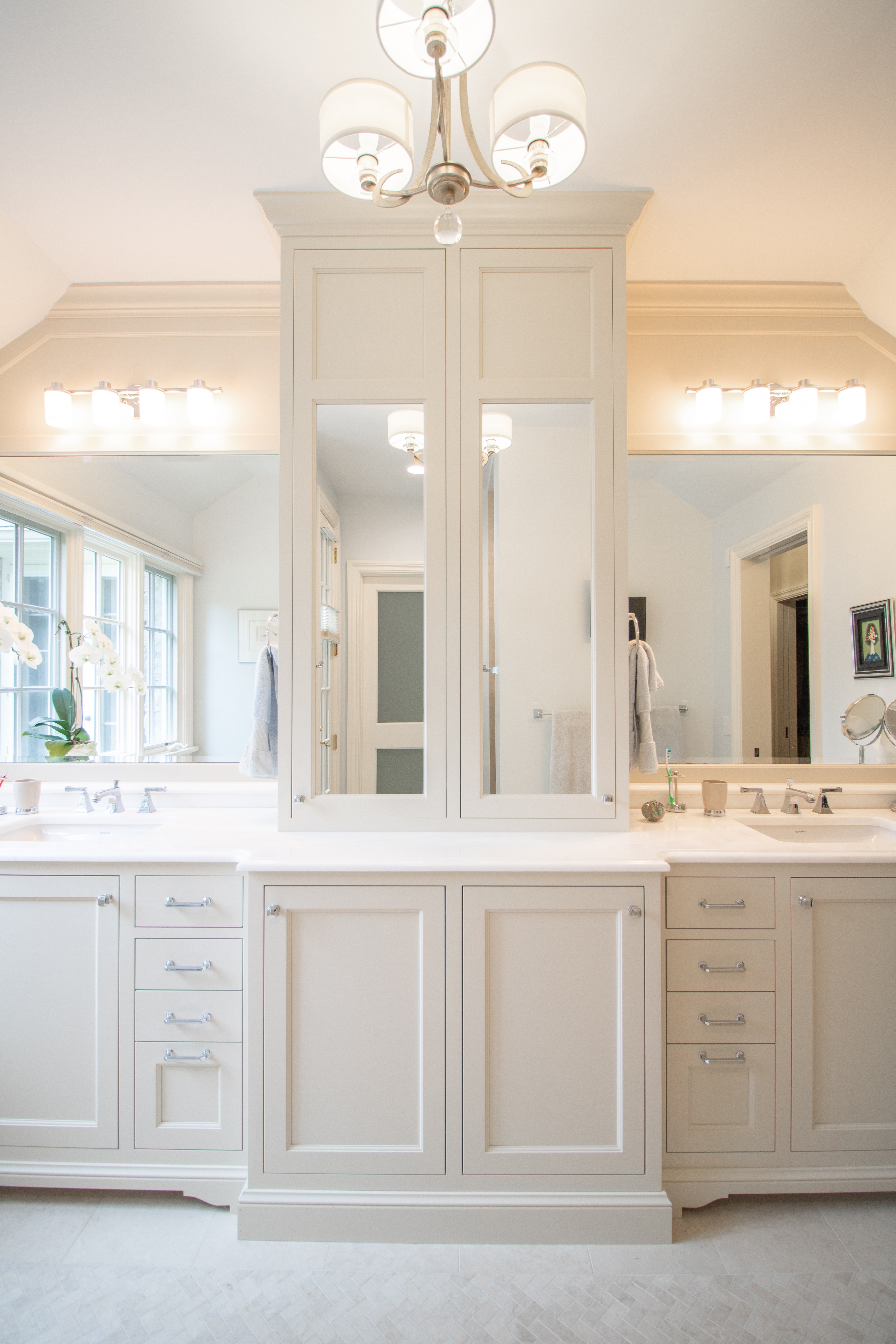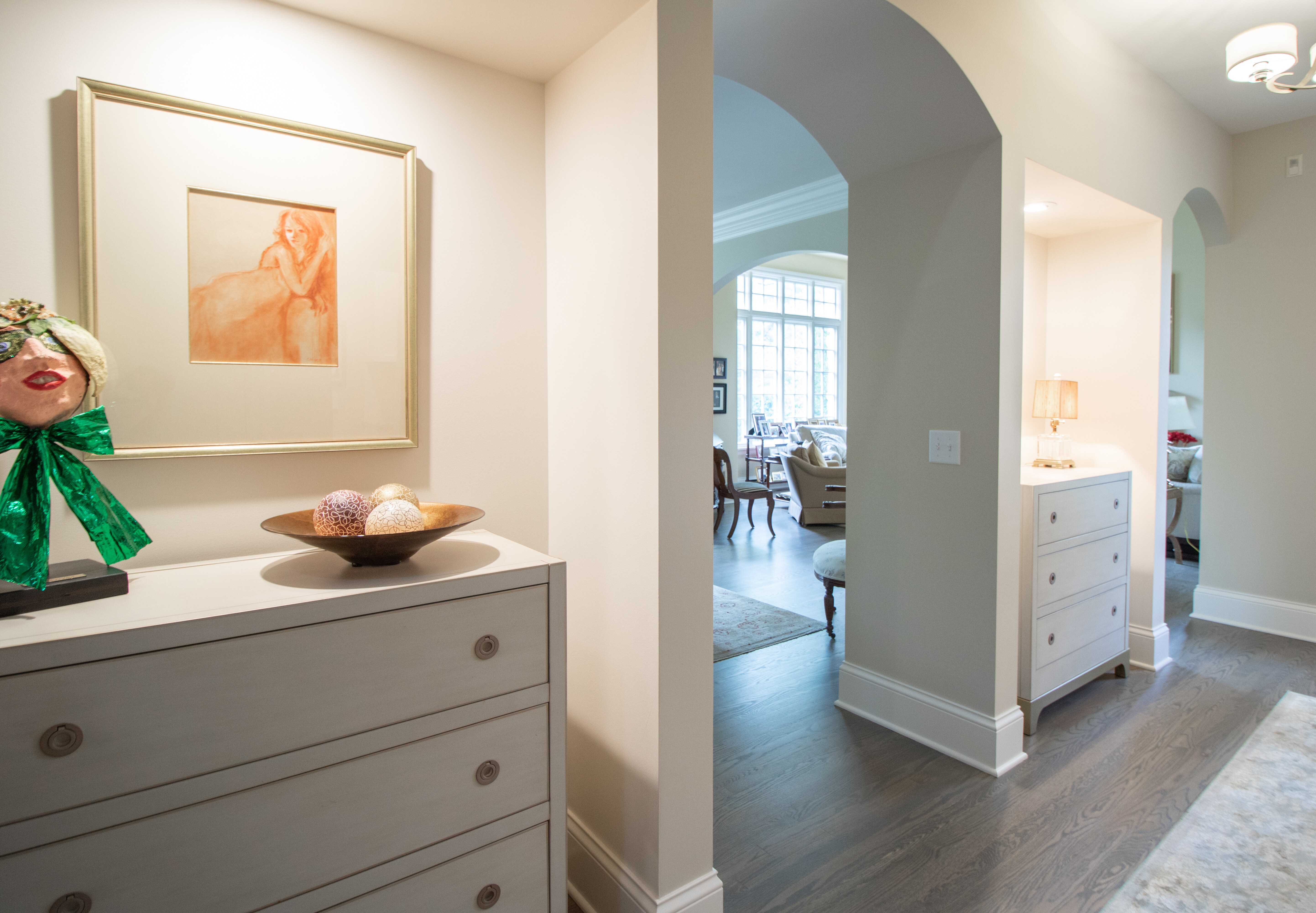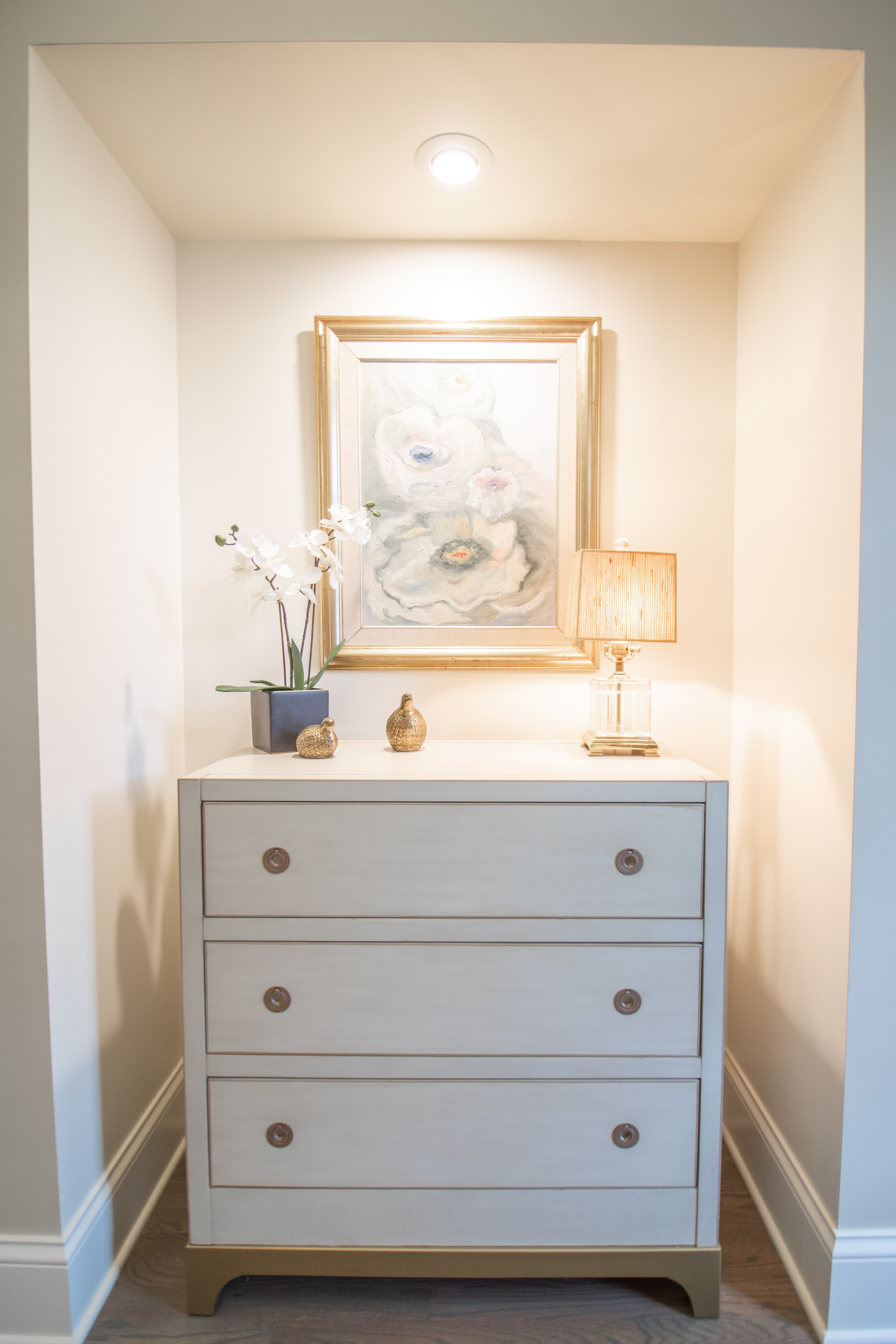 Although this home was only built two decades ago, the new homeowners (our clients) wanted to make some aesthetic changes. We designed new kitchen cabinets - light and bright to enliven the space. Taking advantage of natural light from an existing window, the new master bathroom offers a simple and tasteful design, and provides a much needed organized layout. New hallway niches were also created as a focal point in what otherwise would remain a bland walk-way.