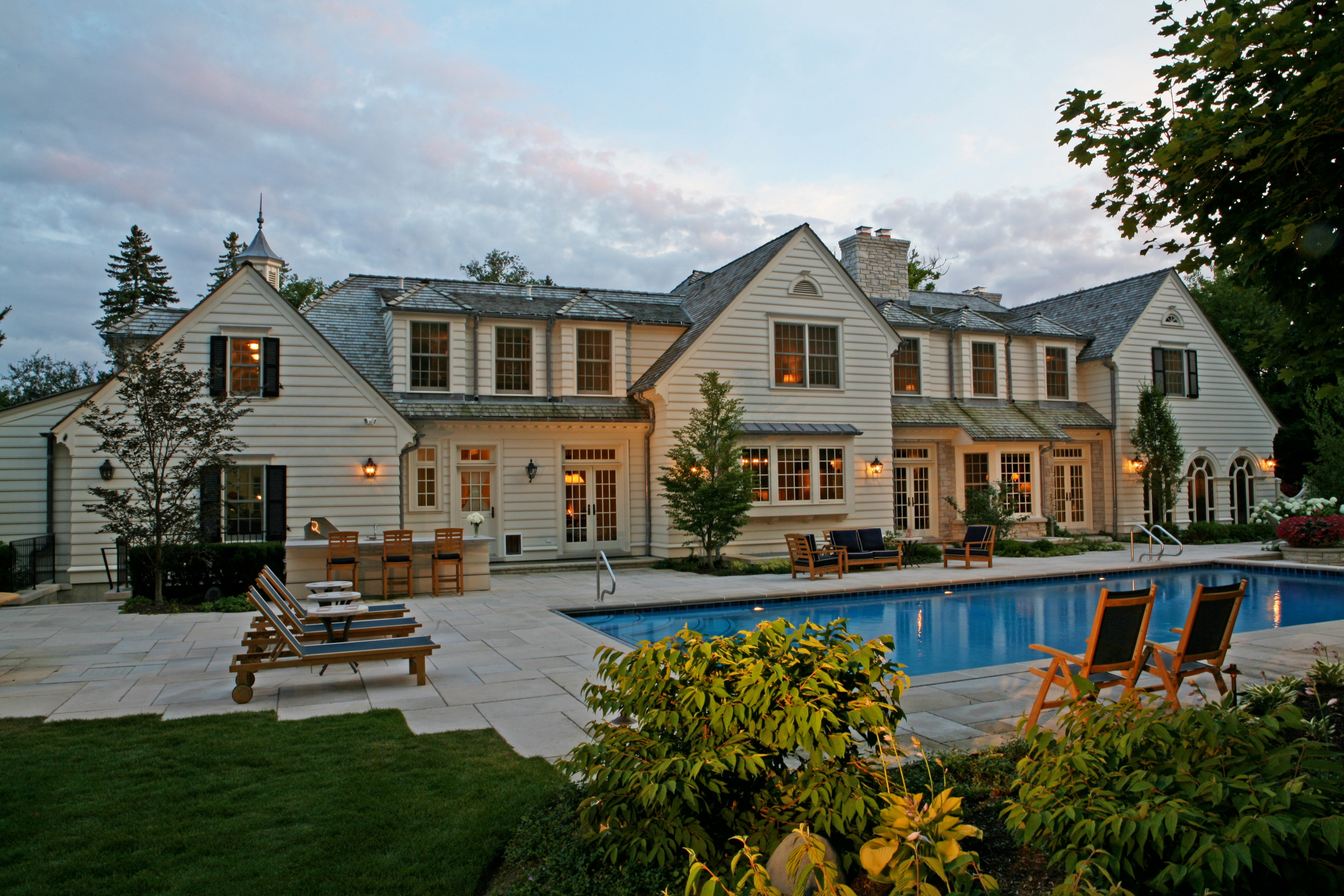Settled on a quiet lot, this new Colonial Revival country style house fits into the historic neighborhood, and embraces the site and prairie setting across the street. The home provides the spaces needed for a refined, yet comfortable family lifestyle. The home's layout allows for easy access from room to room, while still creating quaint and private spaces without being too open. We enjoyed designing all the millwork inside and out, and we assisted with a variety of interior design selections as well. The pool house is home to a potting shed, adjacent to the garden, and a hunting room.
